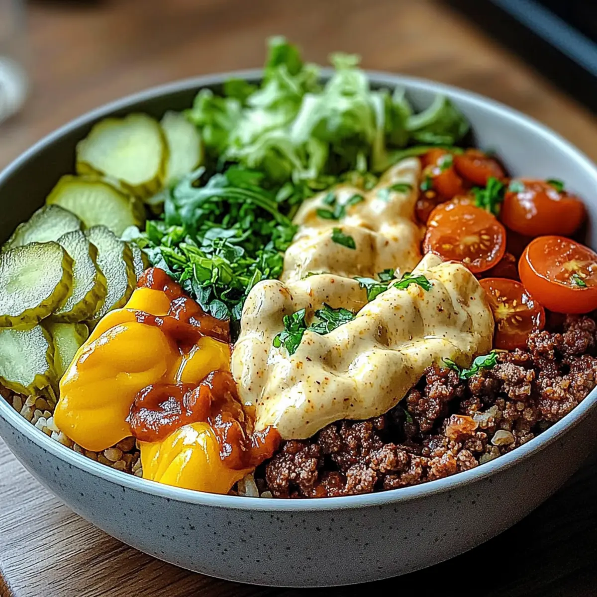 Customizable Delight: Create your own masterpiece by choosing proteins and toppings to fit your taste and dietary needs. Healthy Twist: With options for lean meats and fresh veggies, these bowls are a guilt-free indulgence. Quick Prep Time: Ready in under 30 minutes, making them perfect for busy weeknights. Flavor-packed Combinations: Enjoy the savory richness of beef and the fresh crunch of veggies in every bite. Nostalgic Appeal: Captures the essence of a classic burger without the heaviness. For more creative dish ideas, check out our guide on fresh salads that perfectly complement these bowls!