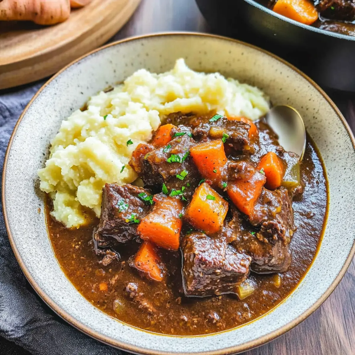 • Creamy Mashed Potatoes: Their smooth texture and buttery flavor perfectly soak up the stew’s delicious gravy, creating a satisfying bite every time.