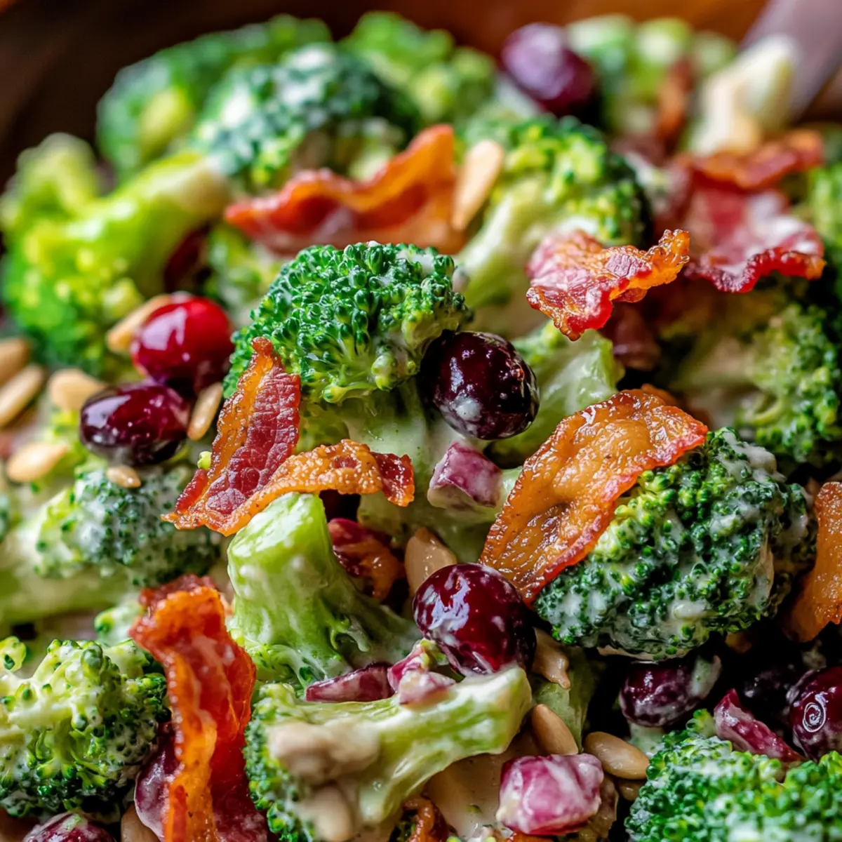 Irresistible Flavor Fusion: This Broccoli Salad with Bacon combines savory bacon with sweet cranberries for an exciting taste sensation.