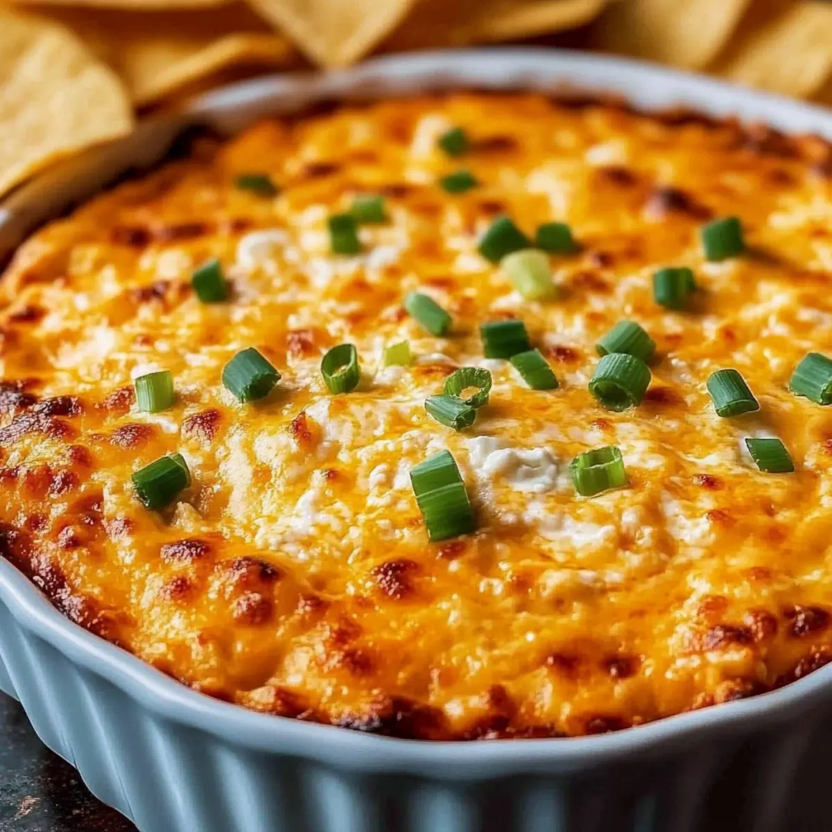 Once your Buffalo Chicken Dip is golden and bubbling, remove it from the oven and let it cool for a few minutes. Before serving, garnish with finely chopped green onions or parsley, adding a pop of color that brightens your delicious dip.