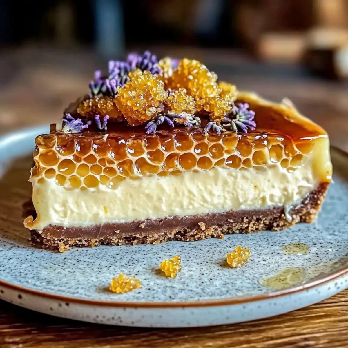 Fruity Twist: Top the cheesecake with a layer of fresh blueberries or strawberries before drizzling with honeycomb for an added burst of flavor and color.