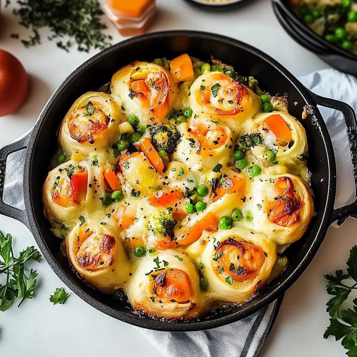 The rich, inviting scent of baked rolls can transform any day into a cozy culinary adventure. Today, I’m thrilled to share my recipe for Cheesy Baked Vegetable Rolls—an irresistible comfort food that’s both versatile and satisfying. These golden beauties are packed with gooey cheese and colorful vegetables, allowing you to use whatever ingredients you have on hand. Not only do they come together quickly, but they also make for a fantastic make-ahead option for busy weeknights. Whether you serve them as a delightful appetizer or pair them with a salad for a complete meal, they promise to become a family favorite. Ready to discover how to create these cheesy delights? Let’s get rolling!