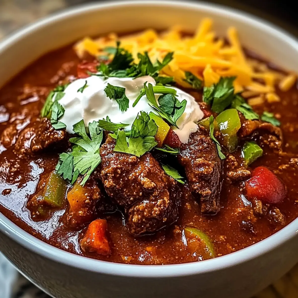 Fresh Cilantro: Bright and herbaceous, chopped cilantro adds a fresh pop that elevates the chili’s richness. Pair with a squeeze of lime for an exciting twist.