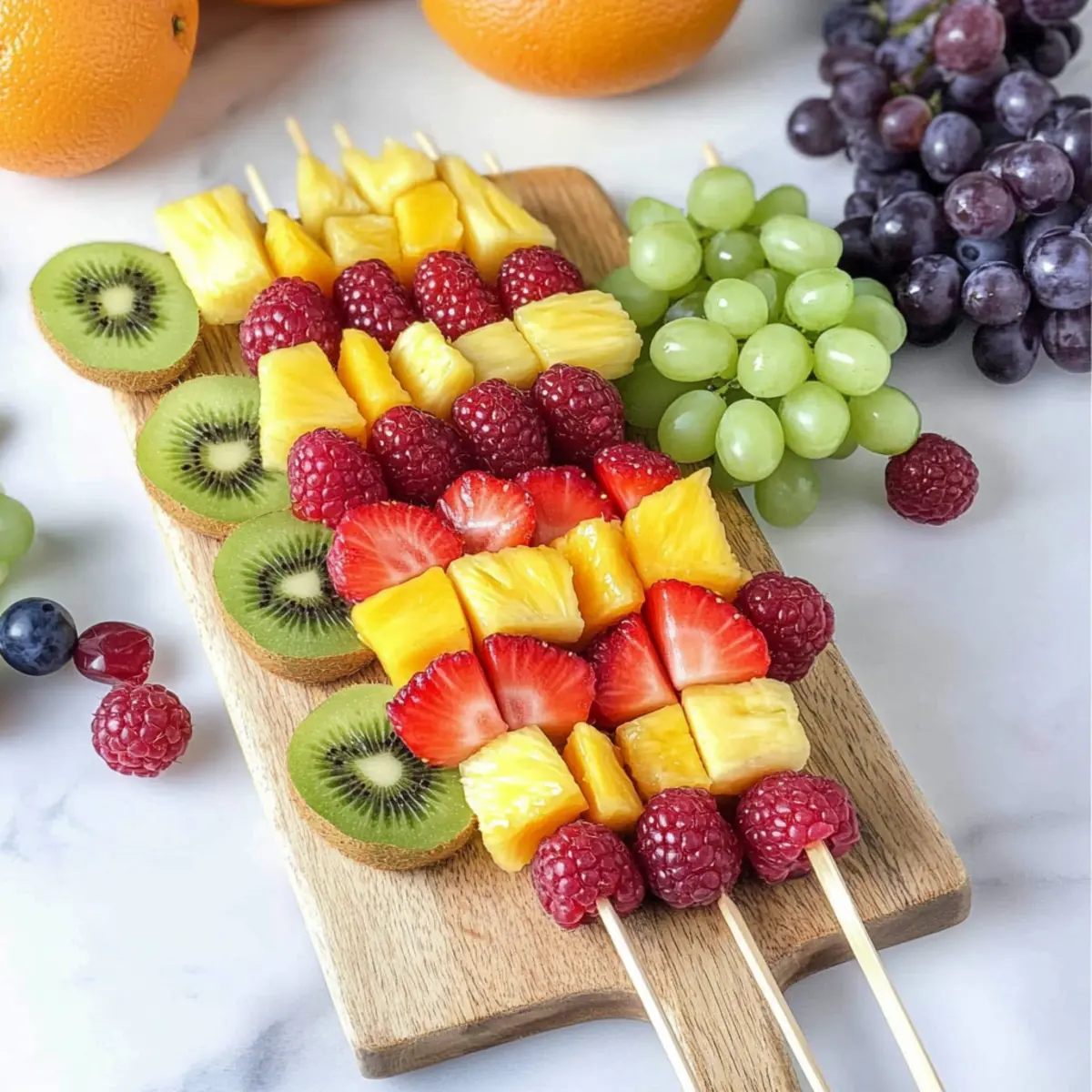 Enjoy these vibrant fruit skewers amidst laughter and sunshine, perfect for brightening up any meal!