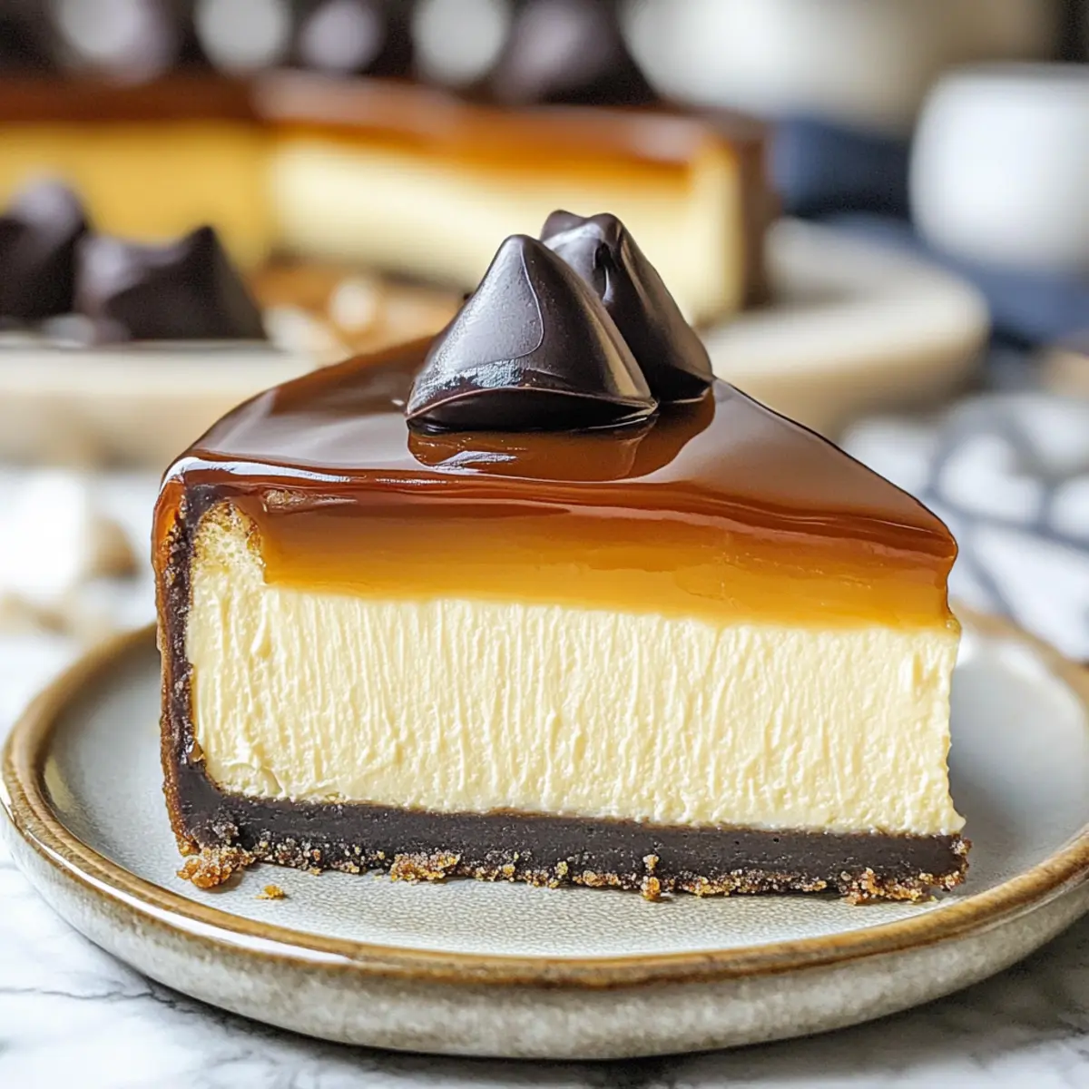 Pour the warm caramel sauce evenly over the set cheesecake. Return the cheesecake to the refrigerator for an additional hour to allow the caramel topping to firm up. Your Millionaire Cheesecake will now be beautifully finished, ready to impress with that shiny caramel layer when served!