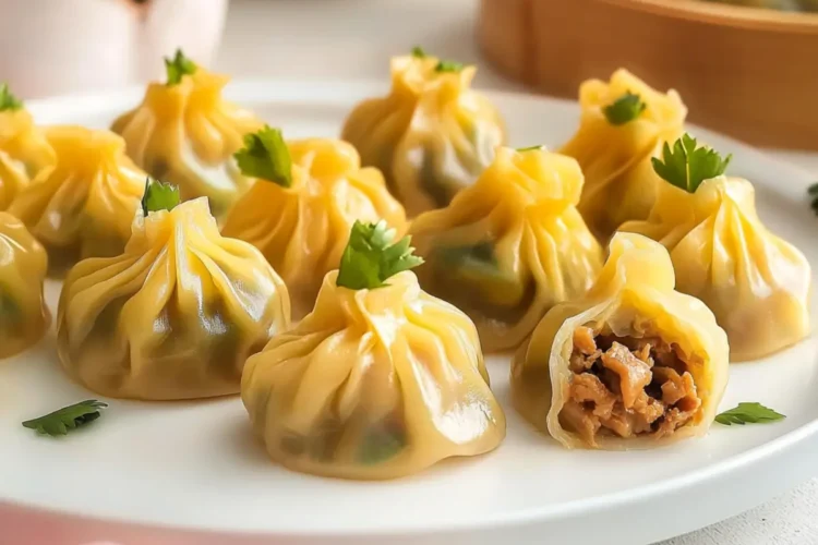 Prepare your steamer by bringing water to a gentle boil. Place the assembled dumplings in the steamer basket, making sure they don’t touch each other to avoid sticking. Steam the dumplings for 10-11 minutes over medium-high heat until the wrappers turn translucent and the filling is cooked through. The dumplings should look shiny and slightly firm to the touch when done.