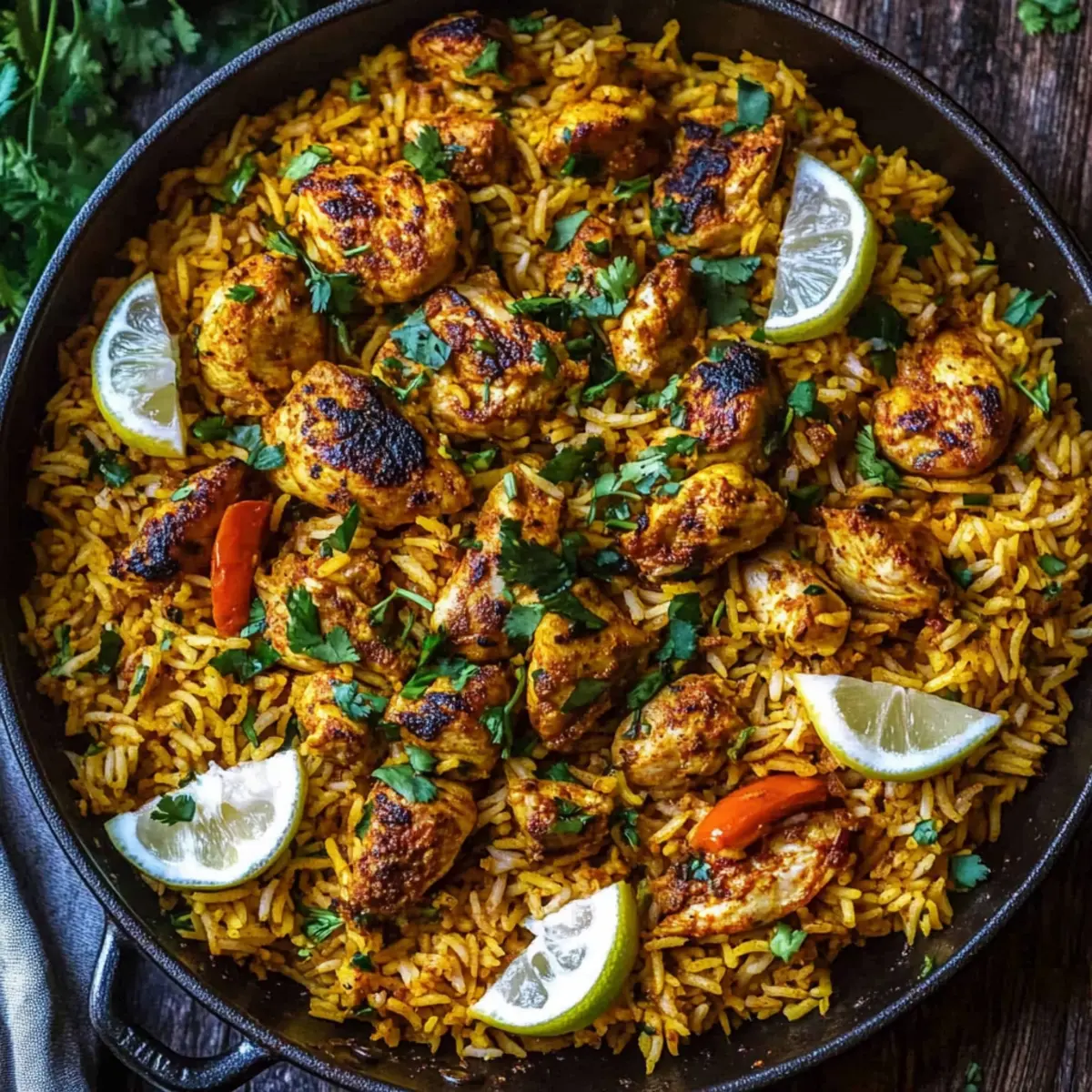 Marinate the chicken overnight for deeper flavor. Avoid lifting the lid while cooking the rice to retain steam.
