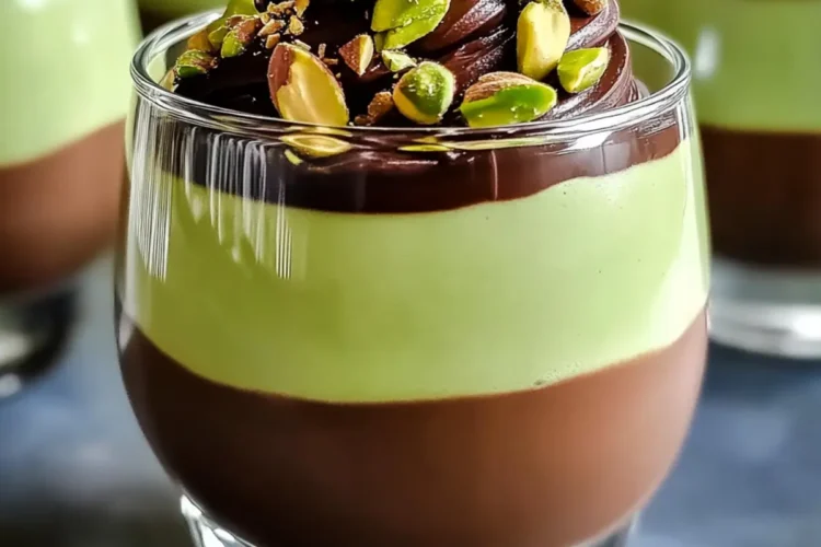 This Pistachio Mousse with Chocolate Ganache is a creamy, no-bake dessert that's easy to make and perfect for any occasion.