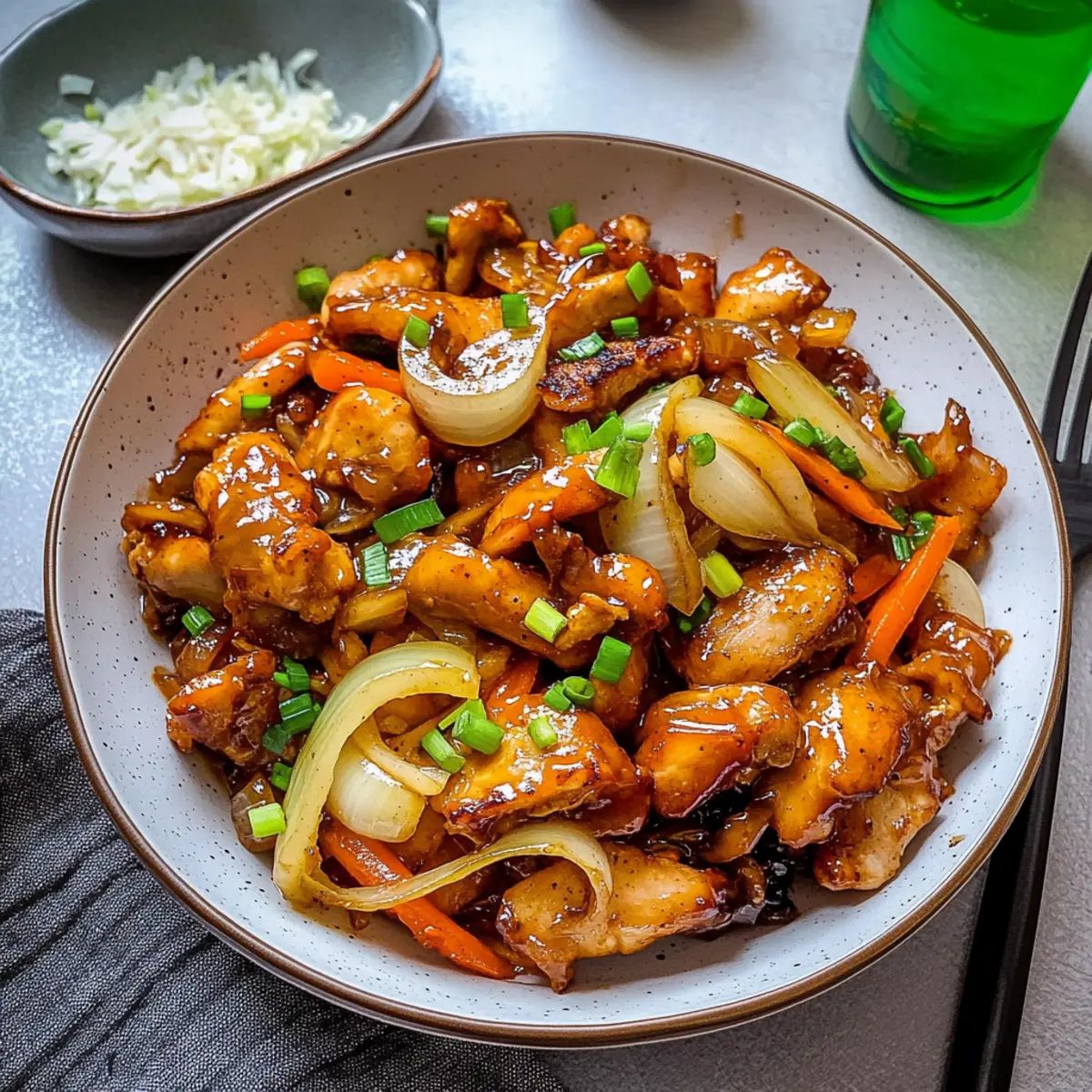 Flavor Explosion: The tender chicken thighs paired with sweet onions and carrots create a delightful marriage of tastes, all enhanced by aromatic garlic and rice wine.