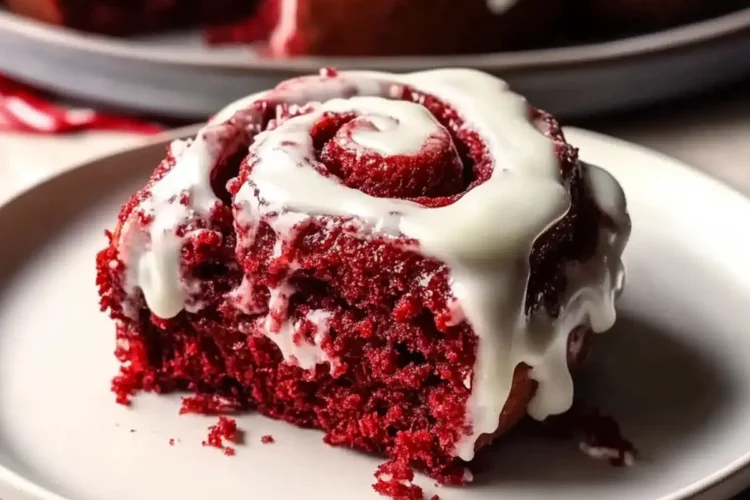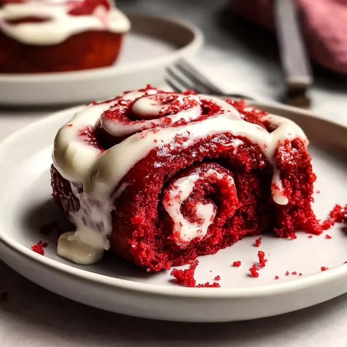 These Red Velvet Cinnamon Rolls blend rich cocoa and cinnamon flavors, topped with creamy frosting, making them a delightful treat for any occasion.