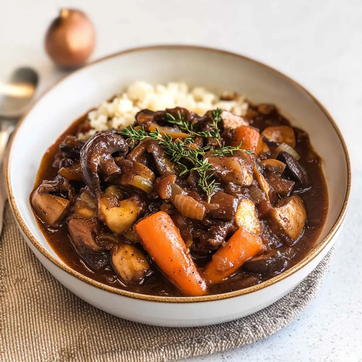 There I was, nestled in a cozy kitchen on a chilly evening, watching the steam rise from a bubbling pot of Easy Vegan Mushroom Bourguignon. As the comforting aroma enveloped the room, I knew I had struck gold with this rich vegan mushroom stew. Not only does it make for a delightful, low-calorie meal, but it also brings that warm, hearty essence of traditional French comfort food right to your dinner table. Imagine tender mushrooms mingling with sweet baby carrots and onions, all simmered in a luscious red wine sauce. It’s the perfect dish to warm you up and impress any guests or feed your own cravings for something nourishing and indulgent. Ready to create a delightful twist on a classic? Let’s dive into this mouthwatering recipe!