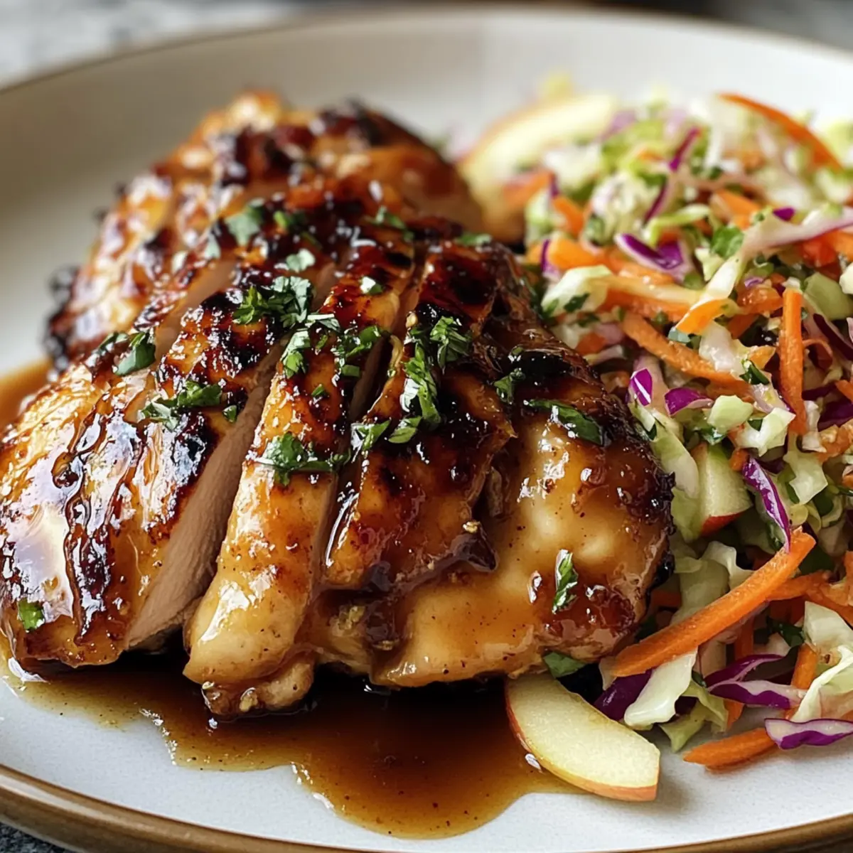 These Sticky Apple Cider Chicken and Crisp Autumn Slaw recipes are perfect for busy weeknights when time is tight! You can prepare the apple cider glaze up to 24 hours in advance; simply store it in an airtight container in the refrigerator to maintain its flavor and thickness. The chicken can be seared and stored in the fridge for up to 3 days before finishing with the glaze. As for the slaw, you can chop the vegetables and assemble the salad up to a day ahead, but dress it just before serving to keep it crispy and fresh. When ready to enjoy, reheat the chicken gently and finish cooking it with the glaze for restaurant-quality results with minimal effort!