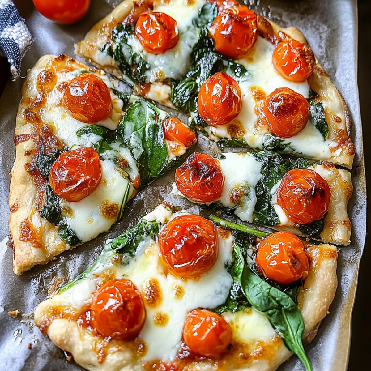 The golden glow of roasted tomatoes, mingling with the lush green of sautéed spinach, transports me to a sun-drenched Mediterranean market. Today, I’m excited to share my beloved Garlic Roasted Tomato and Spinach Flatbread, a dish that effortlessly marries rich flavors with simplicity. This delightful recipe showcases how a little creativity in the kitchen can lead to impressive meals, all while being vegetarian and quick to prepare. Imagine a warm, crisp flatbread topped with savory cheese, sweet tomatoes, and vibrant greens, making it perfect for cozy weeknight dinners or stylish gatherings with friends. Plus, it’s a fantastic canvas for your culinary imagination—feel free to get creative with toppings or follow my expert variations! What twists will you add to this comforting classic?